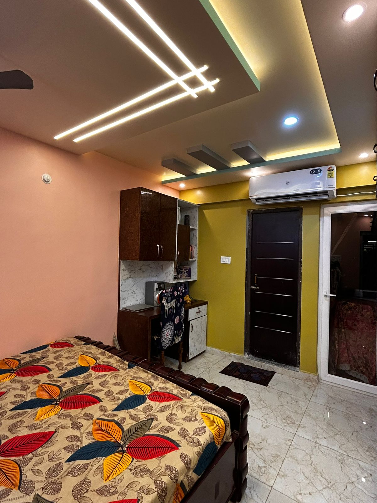 Bedroom- Playful colours, sleek LED ceiling design & a compact study unit for everyday functionality.